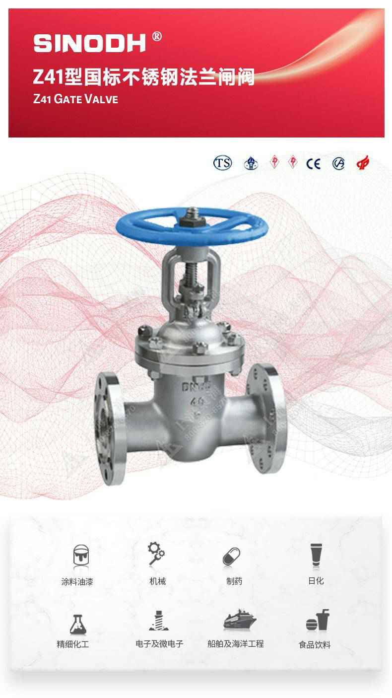 Z41型不锈钢闸阀,为开云手机官方网站登录官网-开云(中国)自主研发生产。本产品是一种最常见的启闭阀,利用闸板的上下工作来接通(全开)和截断(全关)管道中的流体介质。此类闸阀广泛用于自来水、污水、建筑、石油、化工、食品、医药、轻纺、电力、船舶、冶金、能源系统等体管线上作为调节和截流装置使用。