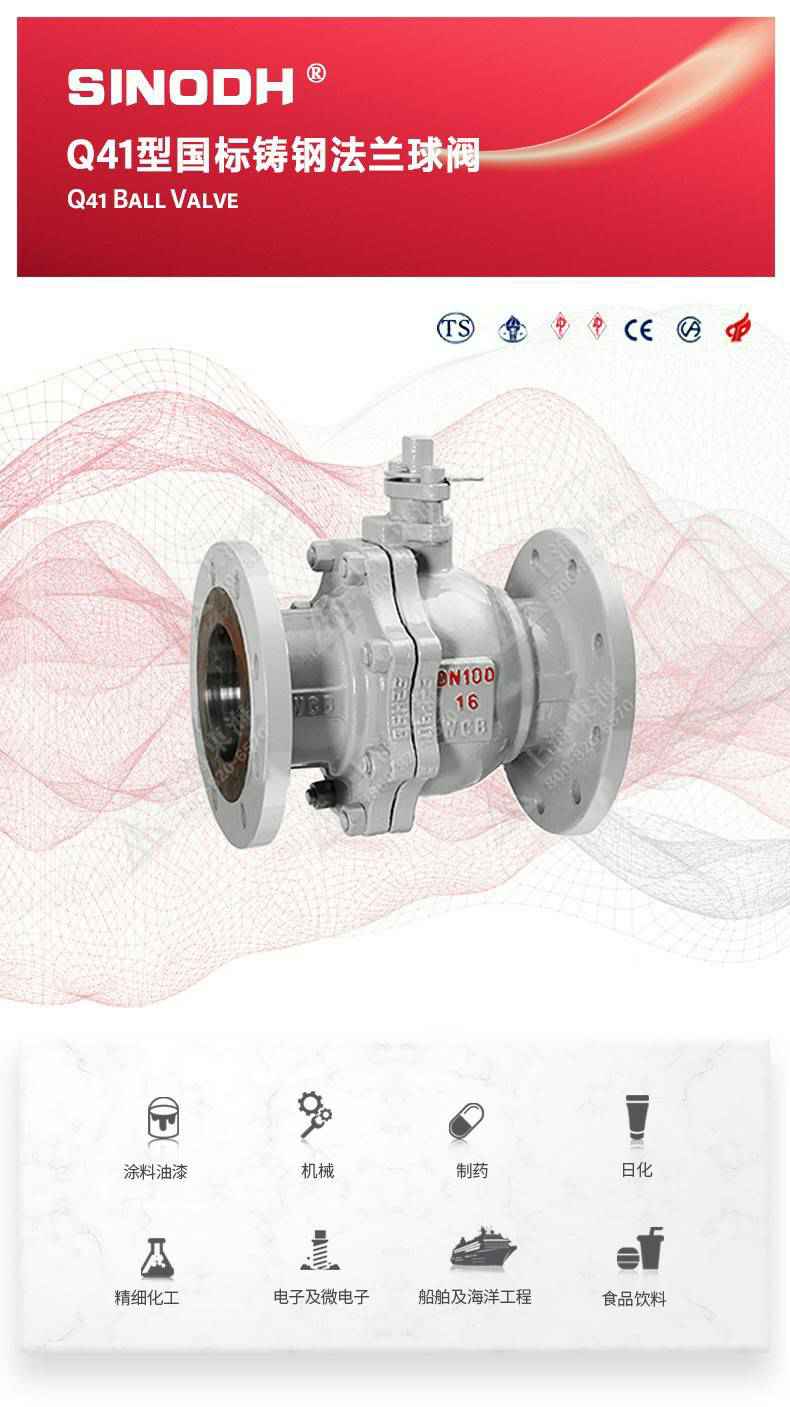Q41型国标铸钢法兰球阀,为开云手机官方网站登录官网-开云(中国)自主研发生产。本产品设计制造标准符合GB/T12237、GB/T12224标准。该产品的球体在介质压力作用下球体能产生一定的位移并紧压在出口端的密封面上,保证出口端密封。适用于水、溶剂、酸和天然气等一般工业介质也适用于工况恶劣的介质,如氧气、过氧化氢、甲烷和乙烯等介质。